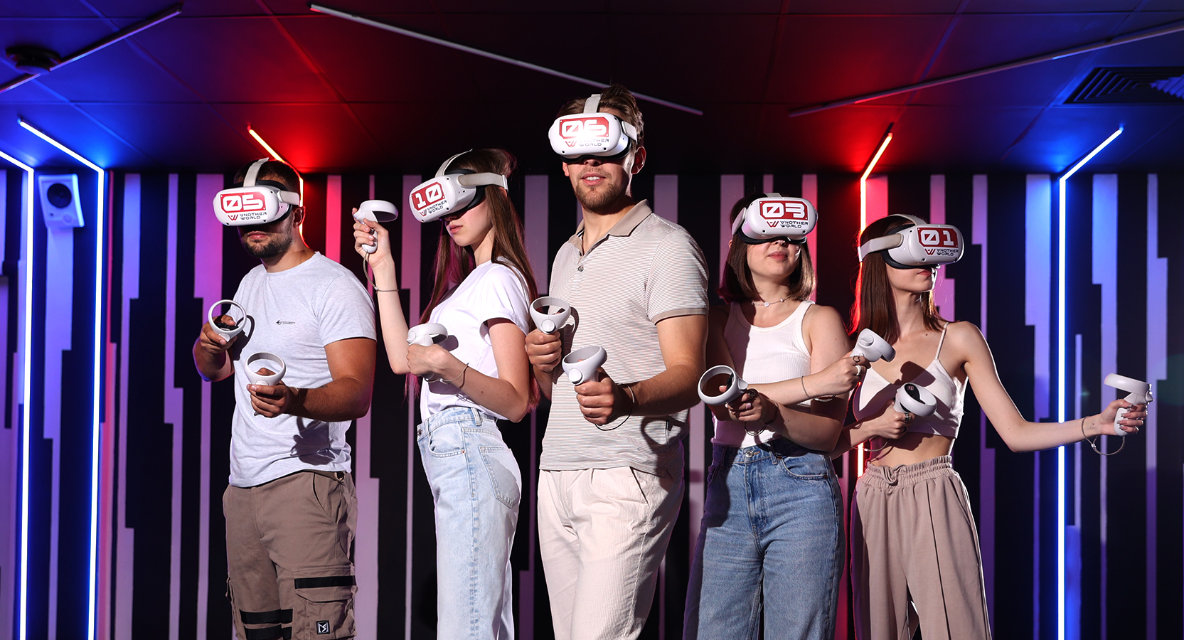 Capture the base and destroy buildings. Move between the platforms and use the bus as a shelter. Hone your accuracy and reaction. Feel the atmosphere of fun and become a champion in an unforgettable VR adventure!